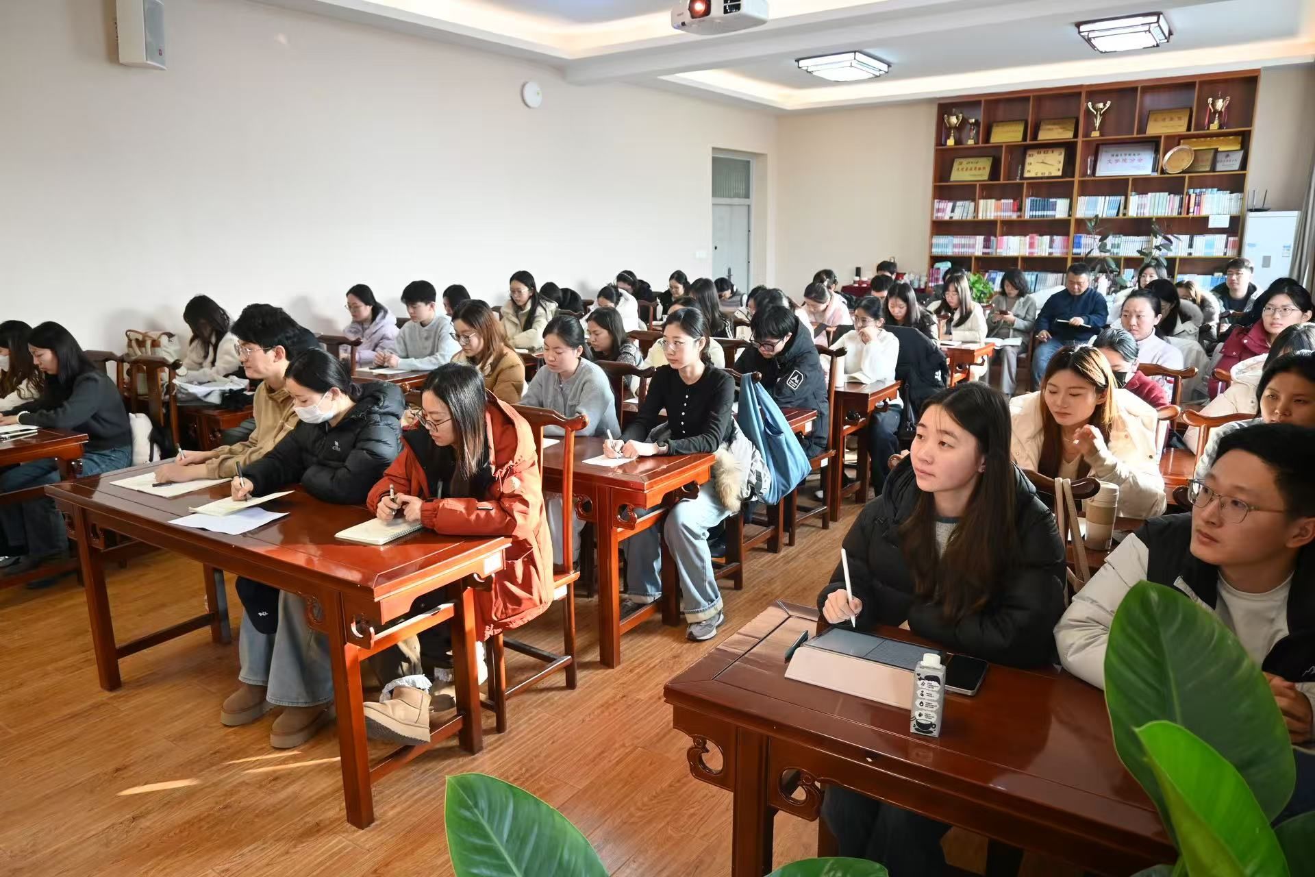 研究生党支部讲授党的二十届四中全会精神专题党课。支部全体党员参加了此次学习。党委宣传部副部长马杰陪同,学院领导班子成员一起聆听授课。