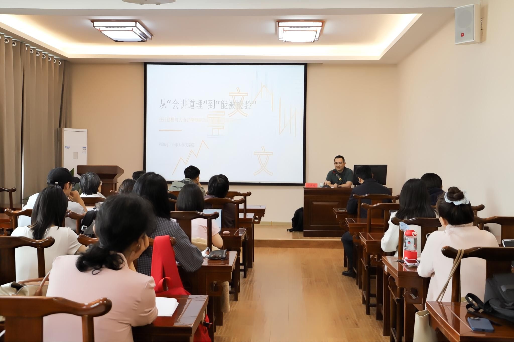 刘洪超副教授以文体风格研究为例,生动说明研究问题升级路径。他指出,“语言风格冷峻”“叙事节奏克制”等传统定性描述存在概念模糊、材料偏倚、难以证伪等症结,根源在于研究问题非可检验性。他继而展示完整实证设计流程:通过语料选取、特征提取和统计检验三步,将主观印象转化为可验证的量化研究,实现从“会讲道理”到“能被检验”的转变。