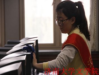 下午5:30,志愿者们在负责人的带领下来到目的地。“电脑机身和显示屏要轻轻地擦,记得一定要把抹布拧干,千万别让电脑进了水”,这是老师在安排志愿者工作时所说的话。随后志愿者们开始了工作。此次的工作主要内容是清洁电脑及电脑桌面。由于电脑设备配置本身不容得马虎擦拭,因而志愿者们格外仔细小心,在擦拭之前尽可能拧干毛巾,轻轻擦拭显示屏,并有序摆放桌面上的键盘和鼠标,随后该将收拾出来的垃圾清理干净。第一遍过后,还检查了第二遍,用干毛巾或纸巾重新擦了一遍,以免遗漏一些死角或留下水渍,整个活动安静而有秩序的进行。活动接近尾声时,志愿者们有序摆放了移动过的椅子。