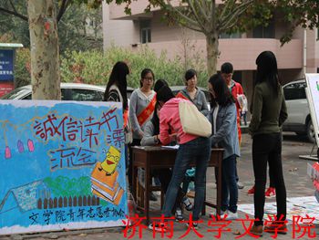 青年志愿者协会在八食广场举行了“诚信图书漂流会”活动。此次活动面向全校学生开展,鼓励大家捐书借书,丰富大学生的业余生活。