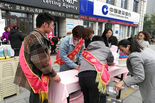 在到达社区并与工作人员沟通之后,志愿者们先帮助社区人员将桌子凳子等物品打包装车送往活动现场。然后同工作人员一起布置会场,在整个布置过程中志愿者们认真负责,做好了每一处细节工作。企业推介会正式开始,各个企业都积极地在自己的位置上进行展销,向居民们推荐。志愿者们的任务则是负责维持会场秩序、帮助解决会场中发生的问题、及时耐心的为社区居民解答疑惑。在活动中,志愿者们与社区居民亲切交谈,帮助居民更好地参加推介会,与工作人员积极合作,帮助推介会更好的举行。活动结束后,志愿者一丝不苟的工作态度获得了居民和企业工作人员的欣赏与认可。